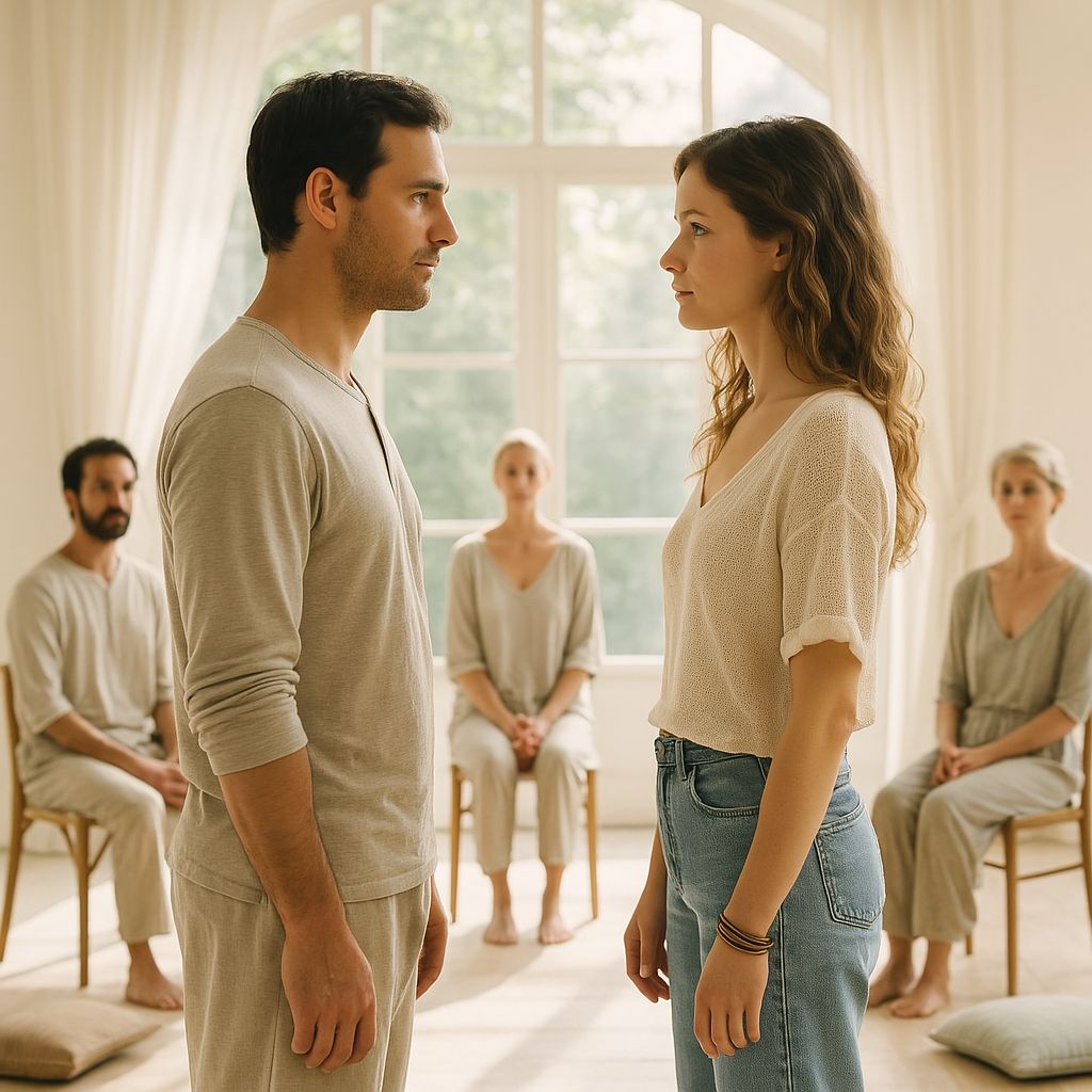 Gericht op de dynamiek tussen partners, vrienden of familieleden. Vaak gebruikt om te kijken naar verstrikkingen, projecties en patronen tussen twee of meer personen.